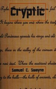 cryptic samuel c swayne Reader By Click Button. cryptic samuel c swayne it’s easy to recommend a new book category such as Novel, journal, comic, magazin, ect. You see it and you just know that the designer is also an author and understands the challenges involved with having a good book. You can easy klick for detailing book and you can read it online, even you can download it